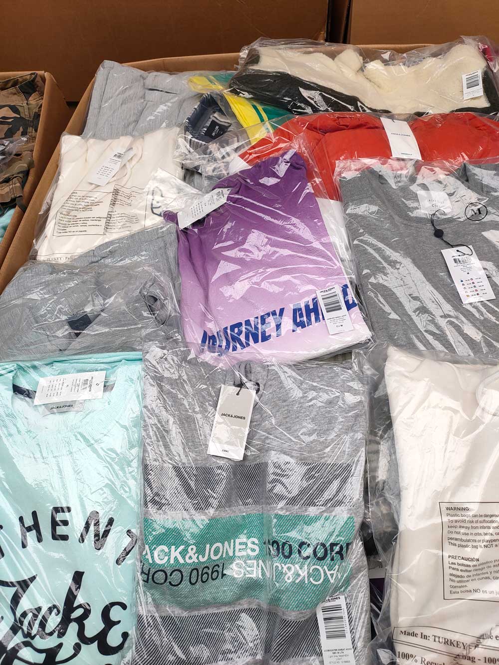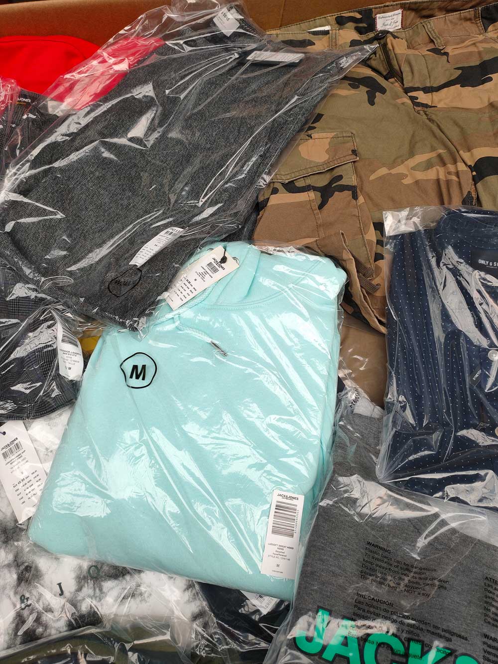 پکیج پوشاک جک اند جونز - Jack and Joens - مجموعه ای میکس از شلوار، شلوارک، پیراهن، کاپشن در مدل های مختلف. حجم آن 100 تا 120 کیلو در یک پارتی کوچک هست. این پارتی برای کسانی که بیزنس شخصی و مستقلی همچون مزون ،مغازه دارند، پیشنهاد مناسبی است.